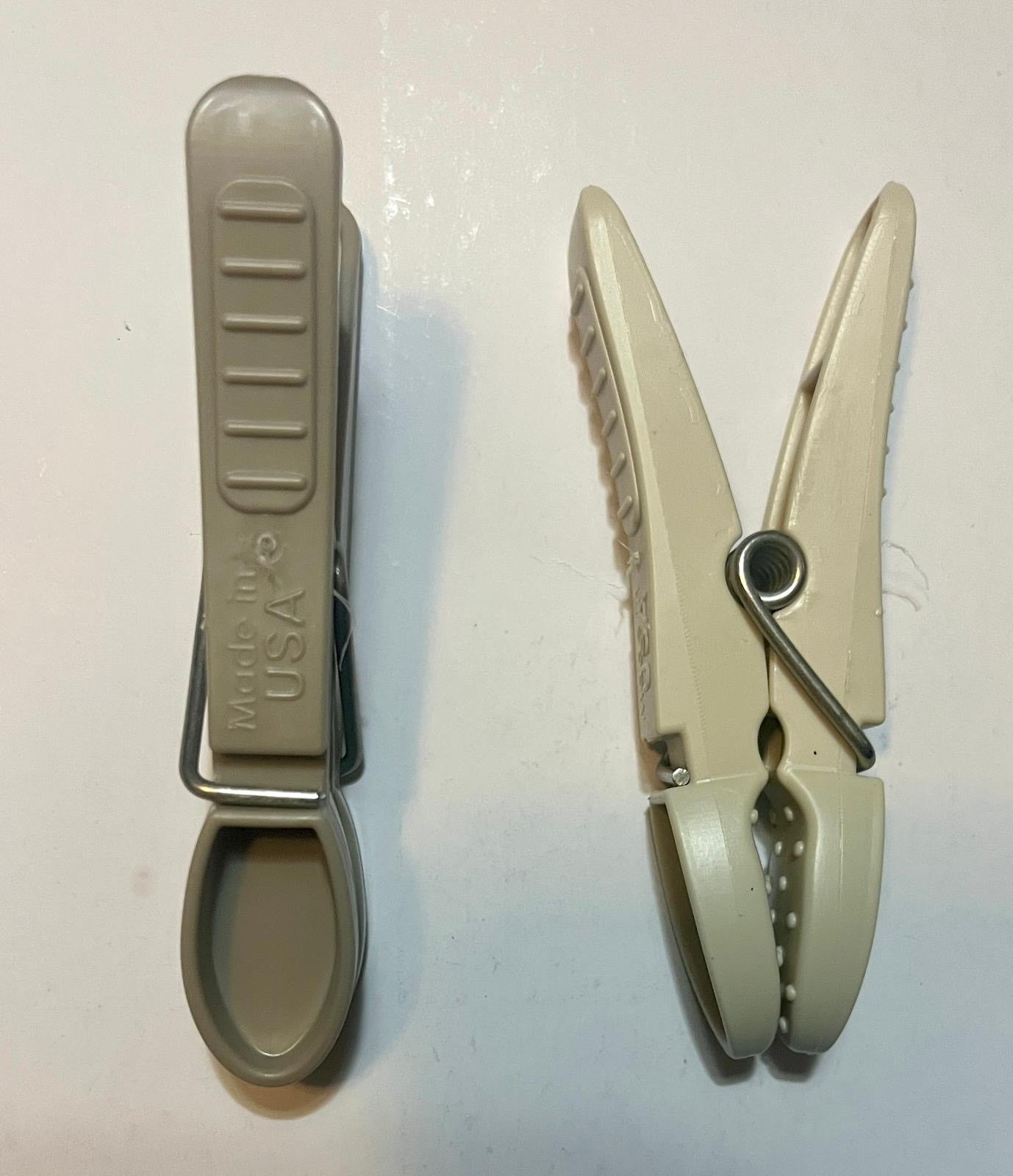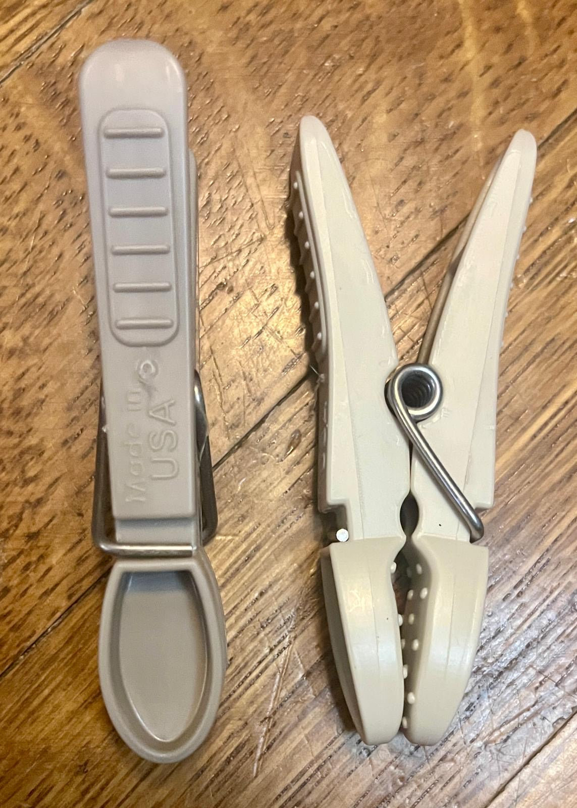 12 weathered grey or clay poly-grip clothespins. Made in the USA. 3 year warranty.